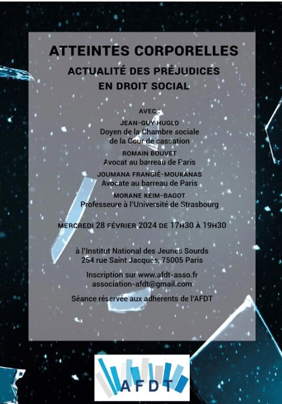 Cette séance est consacrée à l’actualité des préjudices corporels en droit social. Elle permettra de revenir sur les dernières évolutions jurisprudentielles et doctrinales concernant l’indemnisation des atteintes corporelles, les responsabilités en jeu, ainsi que les difficultés rencontrées en pratique par les praticiens du droit du travail et de la sécurité sociale.