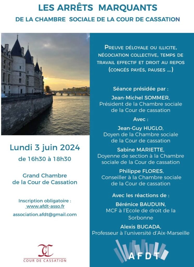 Présidée par le Président de la Chambre sociale, cette rencontre vise à éclairer la portée de ces arrêts, leurs apports pour les praticiens du droit du travail et les évolutions jurisprudentielles en cours.