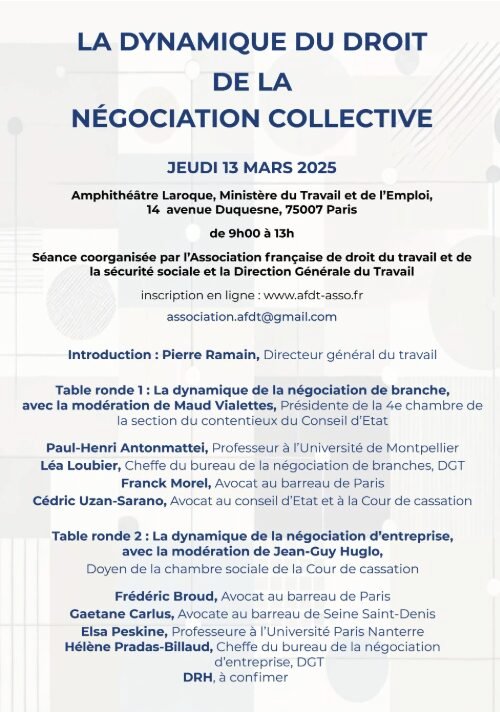 L’AFDT, en partenariat avec la Direction générale du travail et la Direction de la sécurité sociale, organise une matinée de travaux consacrée aux évolutions récentes du droit de la négociation collective.