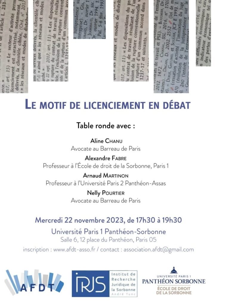 Cette table ronde, organisée en partenariat avec l’Université Paris 1 Panthéon-Sorbonne (IRJS), propose une discussion approfondie autour du motif de licenciement, notion centrale et en constante évolution en droit du travail.